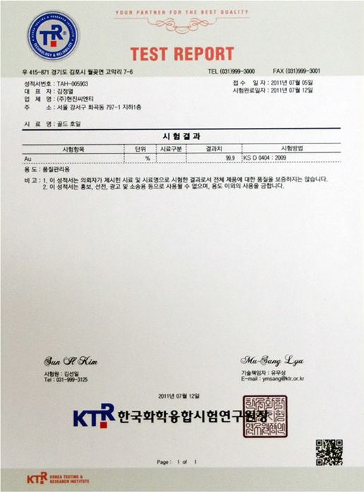 Chứng nhận kết quả đã được thông qua kiểm nghiệm của Bộ y tế Hàn Quốc.