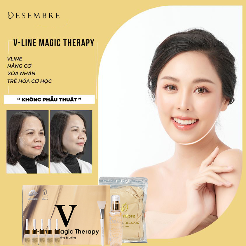 V-Line Magic là một bộ sản phẩm sáng tạo để hồi sinh làn da nhão, chảy xệ, cải thiện các vấn đề của da giúp làn da trở nên tươi sáng và săn chắc. Một liệu pháp với hiệu ứng mạnh xâm nhập sâu vào các tế bào để tăng độ đàn hồi, săn chắc giúp nâng cơ khuôn mặt. Tính chất tuần hoàn liên tục nhằm cải thiện chu kỳ tái tạo da giúp làn da trở nên rạng rỡ, tươi sáng và tràn đầy sức sống.