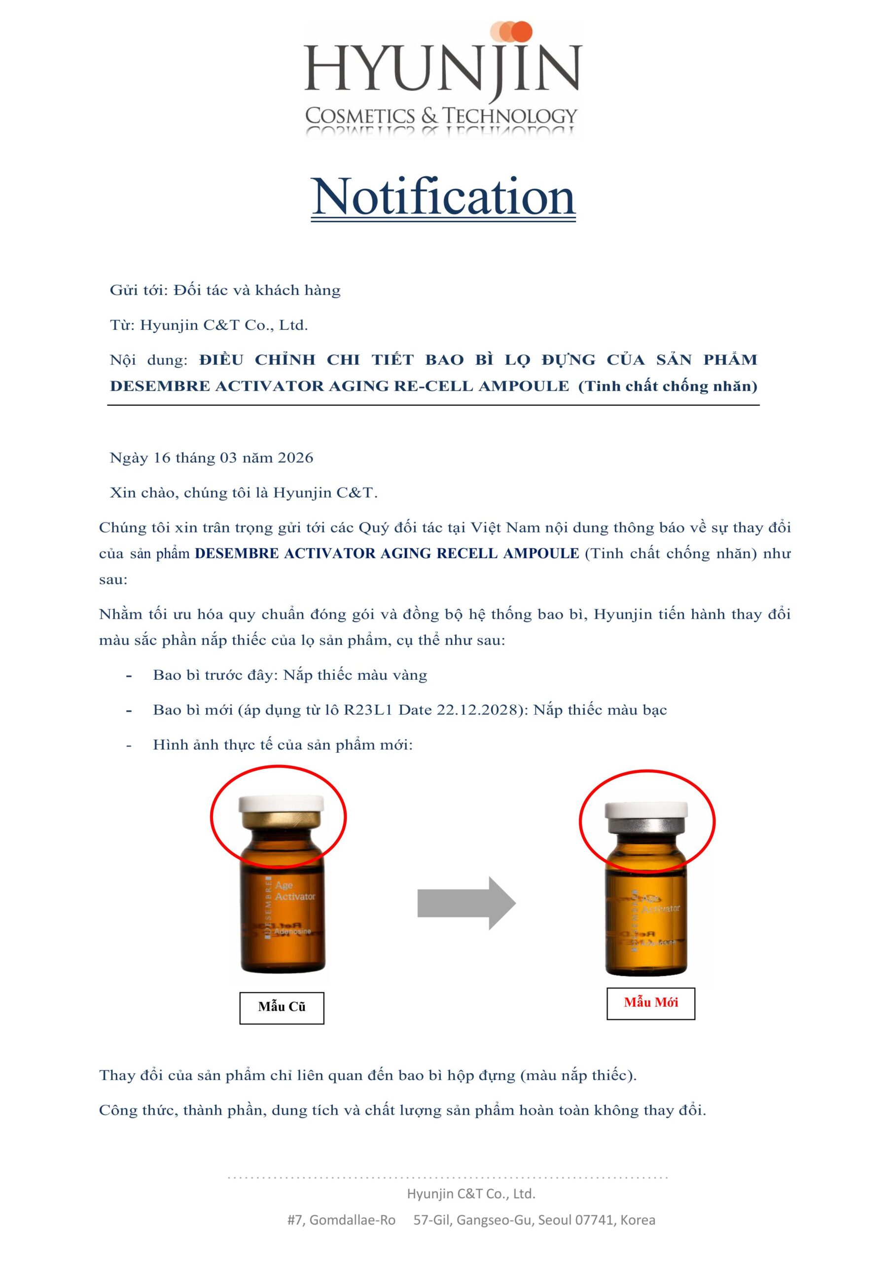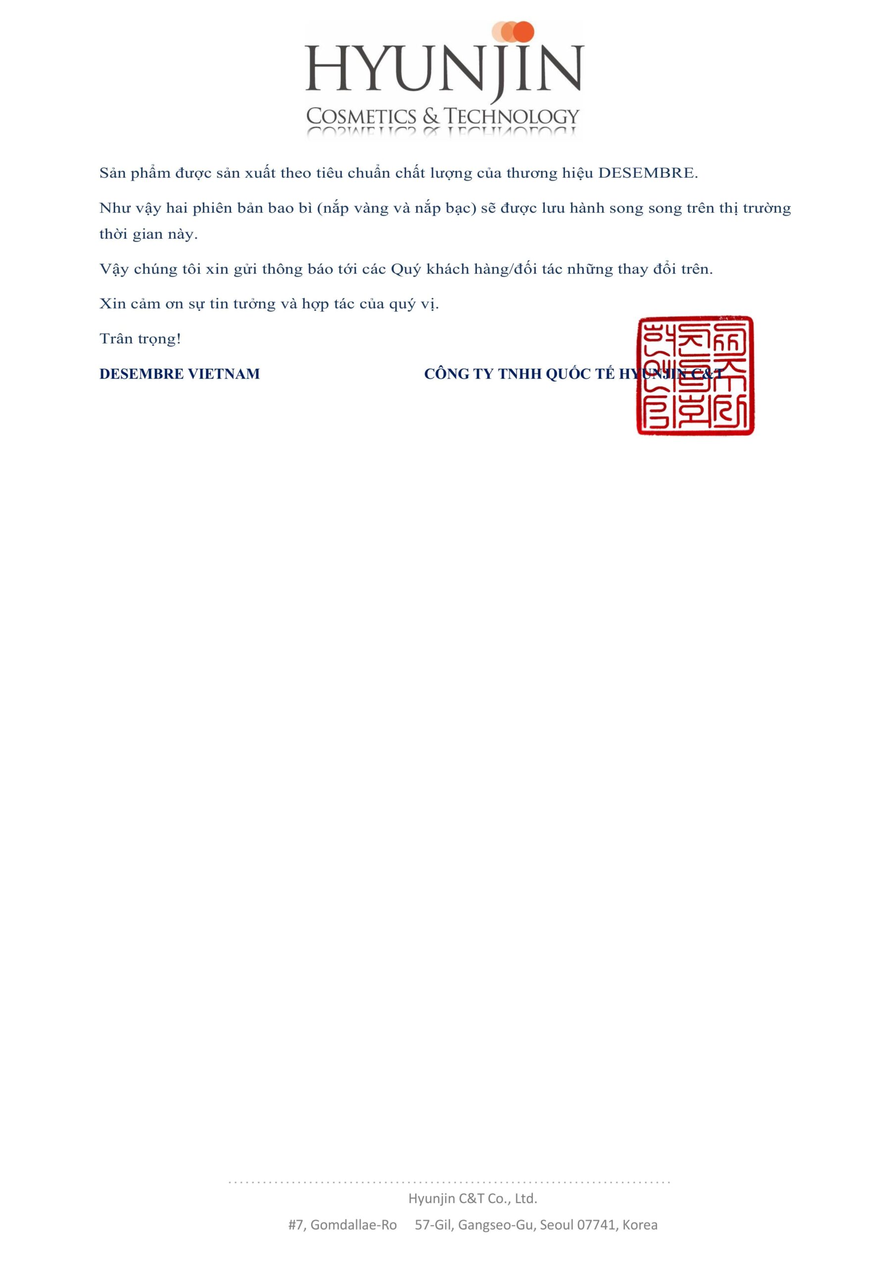 Thông tin, Tin tức Thông Báo: Thay Đổi Bao Bì Lọ Đựng Sản Phẩm Age Activator Ampoule Posted on 16/03/202607/04/2026 by Trang Yến 16 Th3 Thông Báo: Thay Đổi Mẫu Mã Sản Phẩm Massage Cream Thông Báo: Ra Mắt Sản Phẩm Mới Desembre Hydro Blue Spirulina Modeling Mask 500g
